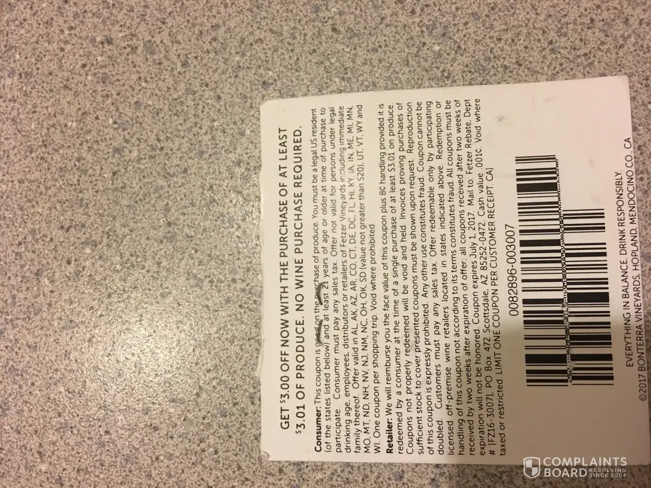 Verified customer This complaint was posted by a verified customer. Learn more