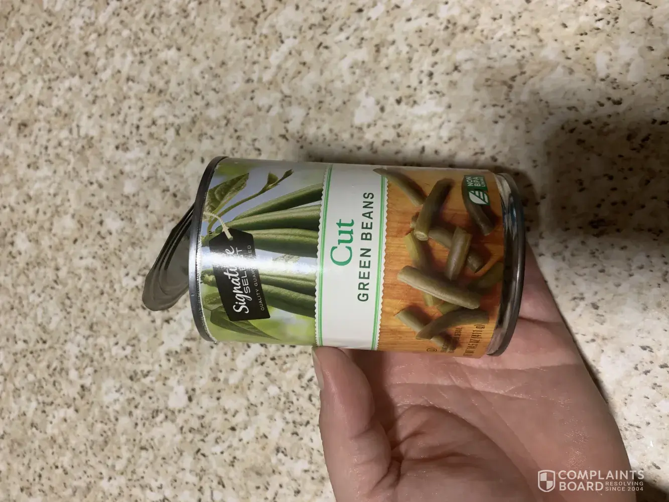 On 10/10/2019 I was sitting down to dinner with my family when my son who is only 7 years old told me it felt like something was poking him in the mouth. I had him spit out his food and this is what was in his mouth. This came from the can of green beans that I purchased at Albertsons. I understand that things happen but this is so completely unexceptionable. This could have literally killed my child. And if it has happened to me who else has it happened to. Shame on the quality control for allowing something so dangerous to be in their foods. I think this is something that needs to be shared with the news.