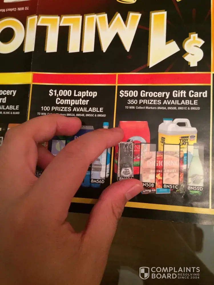 They are all ways out of products you get free, like salt, aspirin, tissues, and every thing else. This is the Monopoly game. I this they order one case when there are 200 people waiting for there items they get free with the game. This game is a pain in the butt.