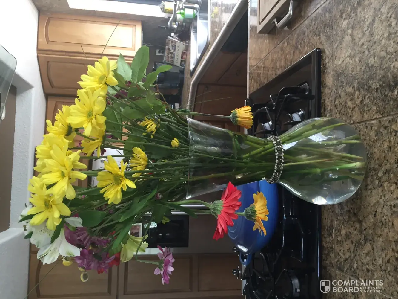 I bought a bouquet of flowers on Friday afternoon, 7/29 for $12.99. The very next morning, the gerber daisies were drooping and the day after, most of the flowers were dead. Huge waste of money and I am never buying flowers from Albertson's again!