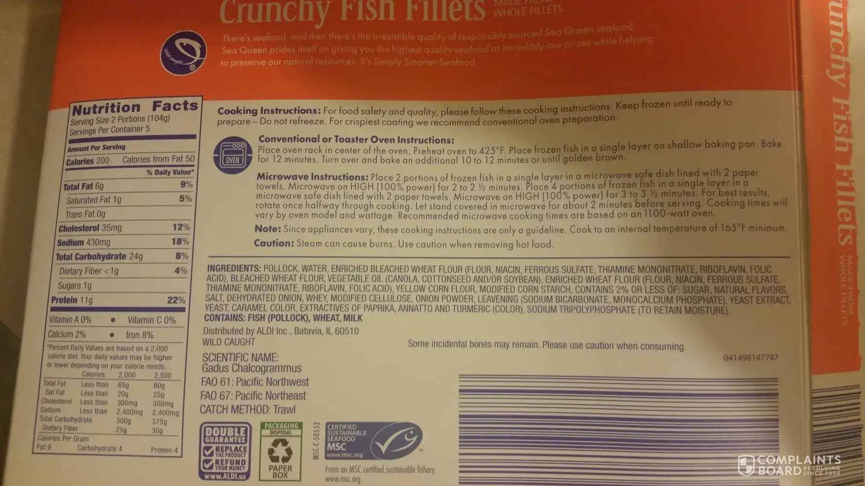 I am complaining about the sea queen crunchy fish fillets