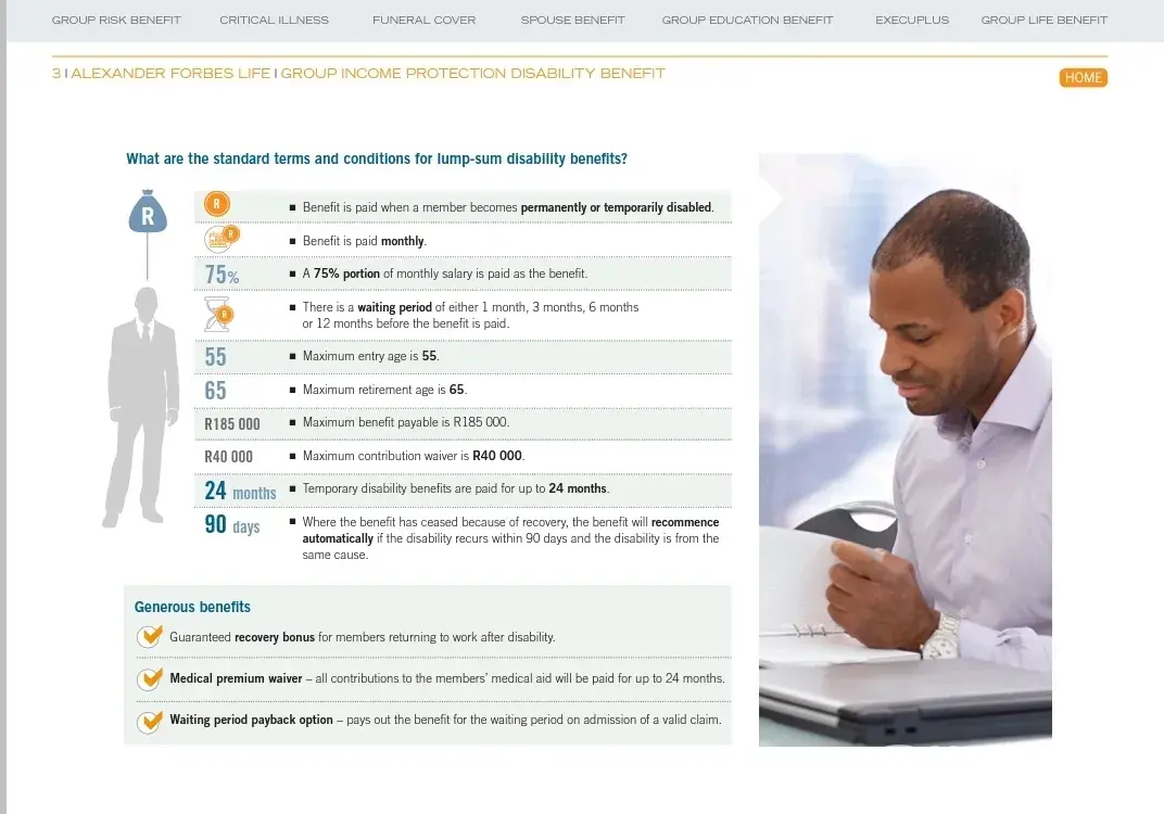 - We have identified high risk financial services or content on Alexander Forbes Group Holdings's website. It is recommended that you use trusted sources and do your due diligence before engaging with any offers or services.