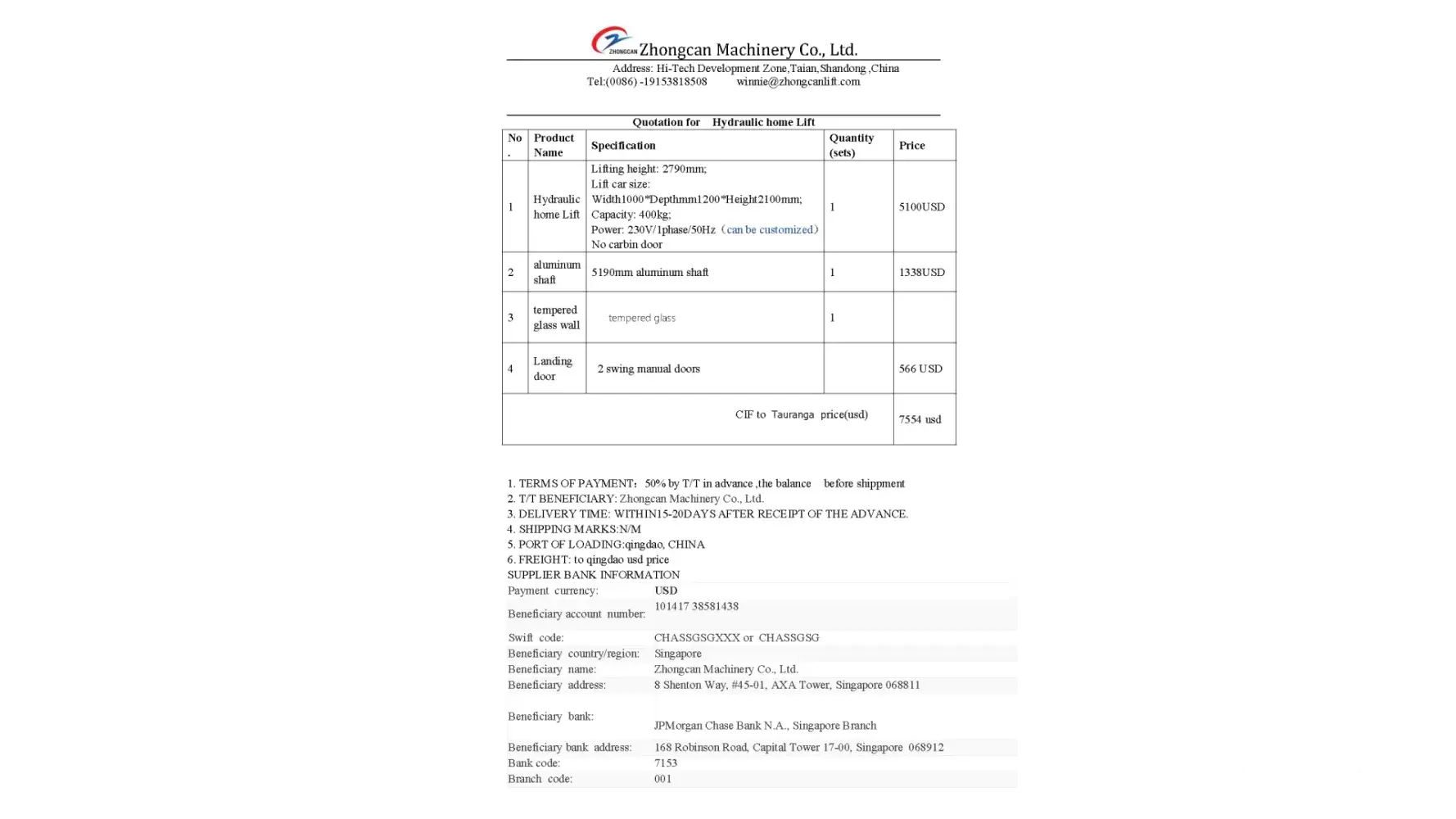 I bought a lift from Zhongcan Engineering. The lift was delivered but not installed straight away because of Covid 19 delays. When the lift was installed there were many many problems and Amy only resloved some of the problems, not all of them. The big problem is the hydraulic valve block is damaged and Amy does not want to help me fix the problem. She has blocked me on Whattsapp and I cannot complain to anyone else.