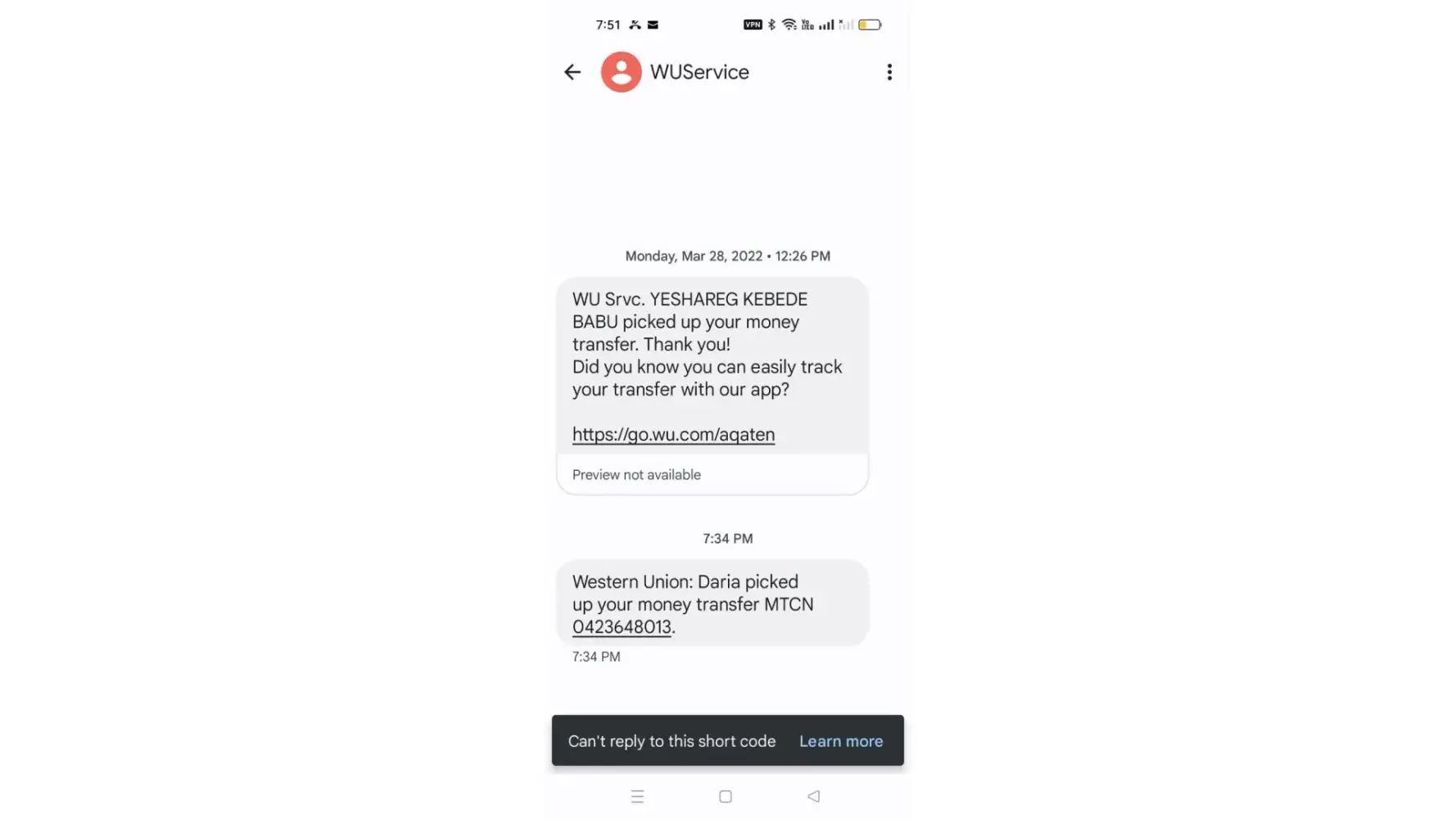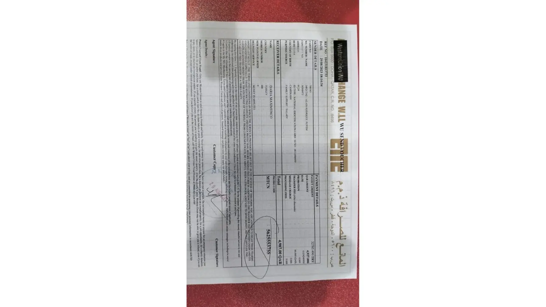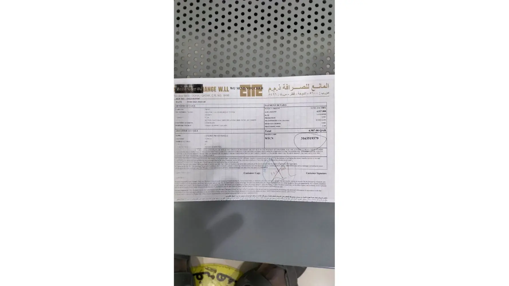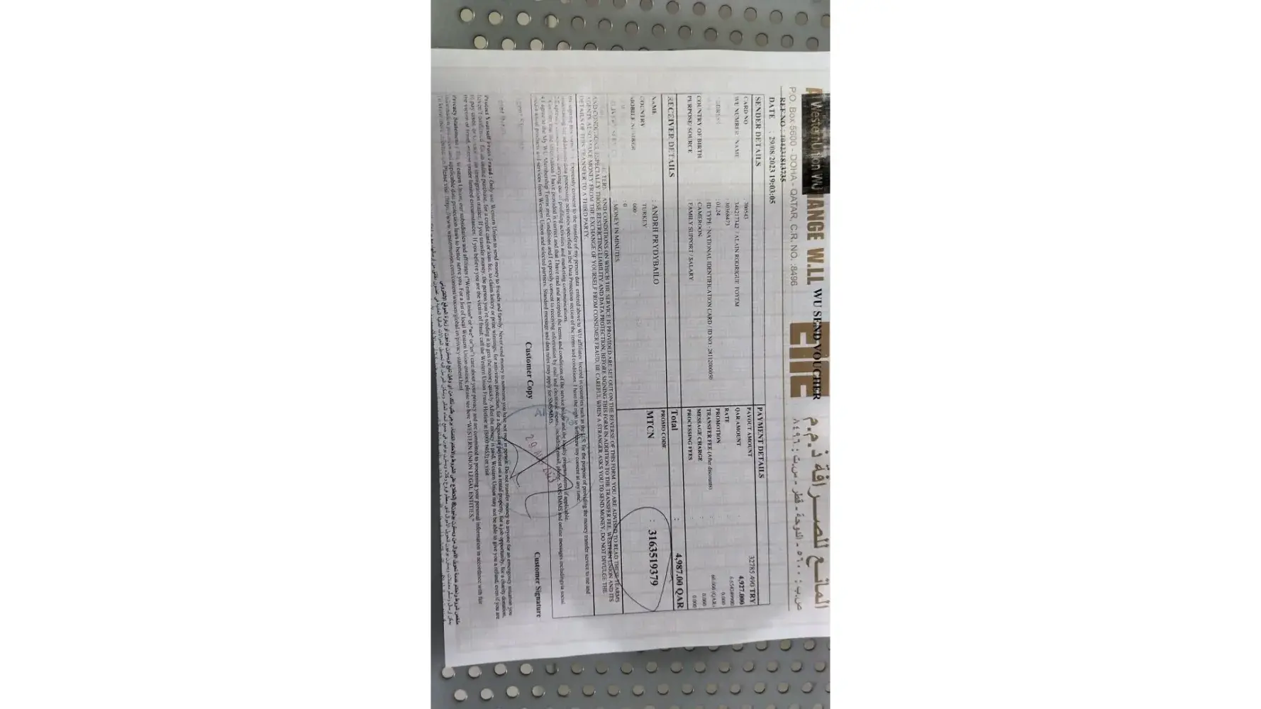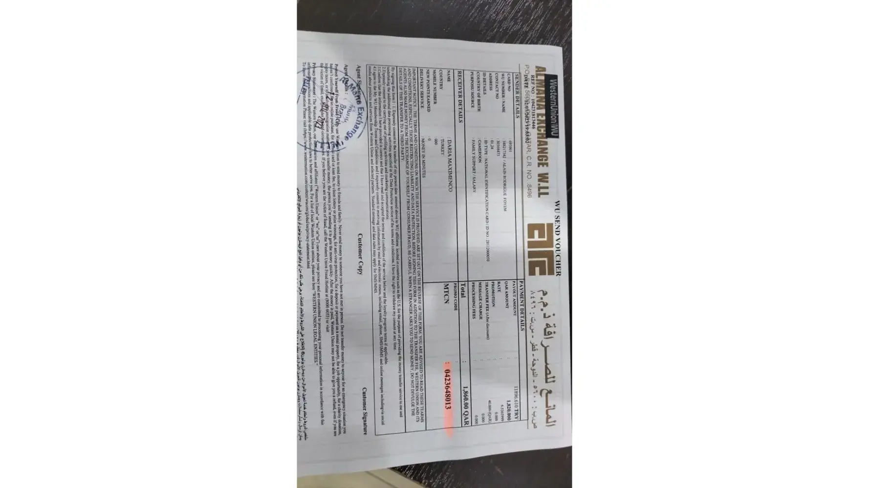 Kindly check your email, Western Union, sent you the receipt of the transaction