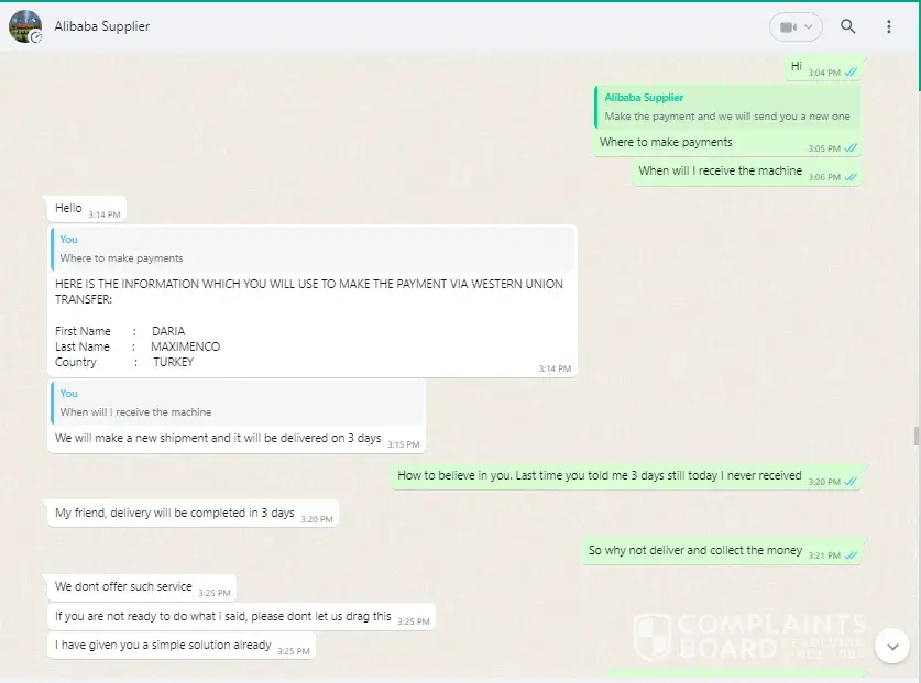 Read full complaintTotal pretentious & faker Alibaba online agent