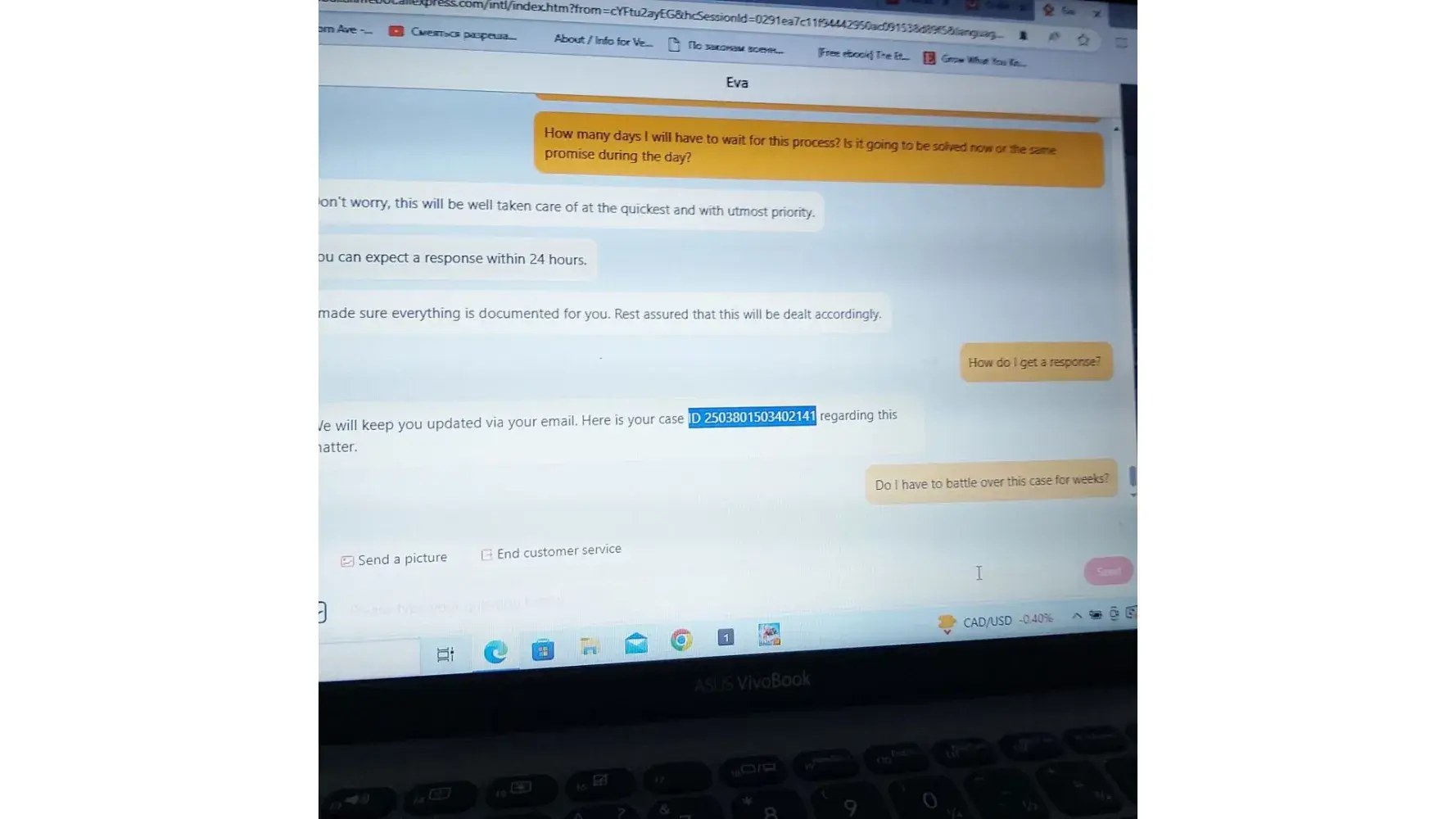 We had not given them any evidence only to the seller and they would not tell us what response they wanted for us?! Every email we sent asking what they needed to know … we got the same stupid email reply!
