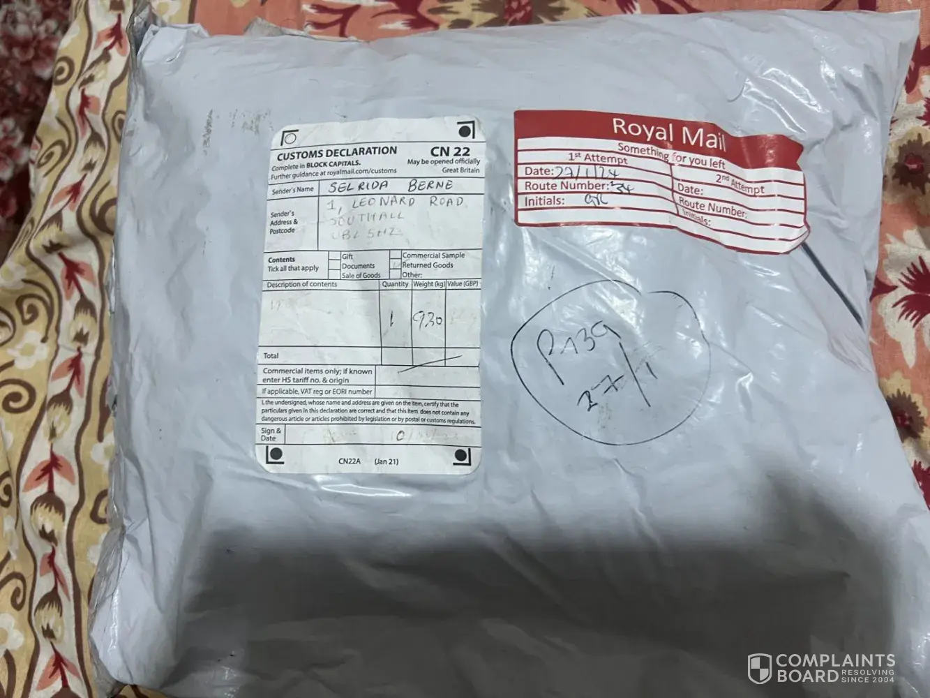IW130532164GB. It advises me that the goods cannot be delivered due to an unexpected problem, on handover, for the items. Please explain why:-