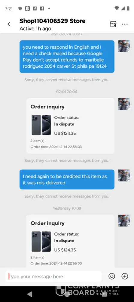 I had returned the item and spend my money to return it. And it’s now been sent back to me. The seller and the AliExpress customer service both ain’t helping me to get my refund. Hence I’m making a complaint I want my money back £81.10. I’m very disappointed I have contacted the customer agents every month since august 2023 and no one helped me they keep closing my query.
