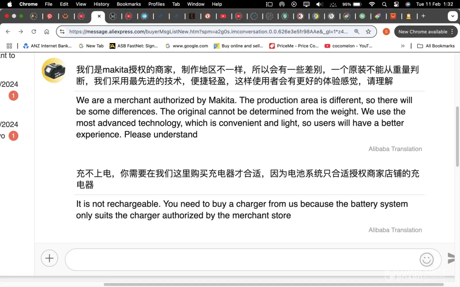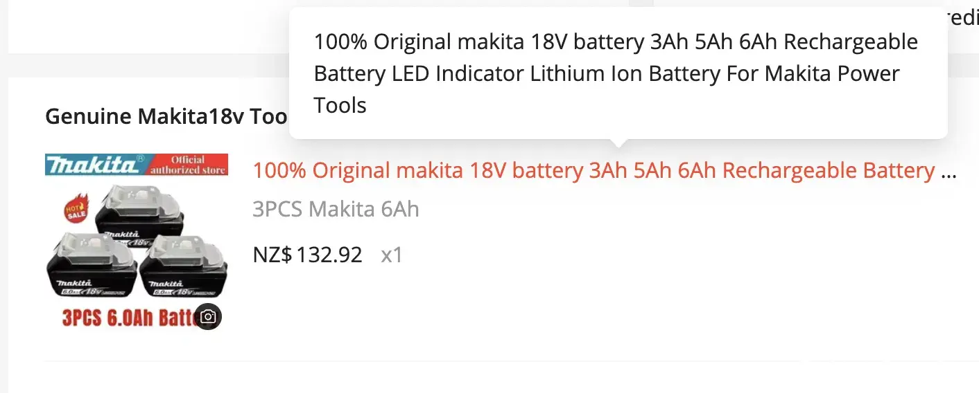 We bought three advertised genuine makita batteries from a seller who was a "global seller “ this meant the order took months to arrive, but also we were given no chance to review the product. When all three batteries failed after only two charges we realised they were not genuine. The seller wanted us to buy their charger claiming it was needed to charge their batteries, we refused as our charger was new and it was a genuine makita battery. They then offered to send replacement batteries which we didn’t want. After three months of frustrating emails they finally said we could get a refund. This never arrived … after a month waiting we contacted ali express and they said the seller would contact us within 24 hrs … this also never happened. After another month of frustrating emails we were told"since your evidence is invalid, please understand only with your response we can help you further on this order.