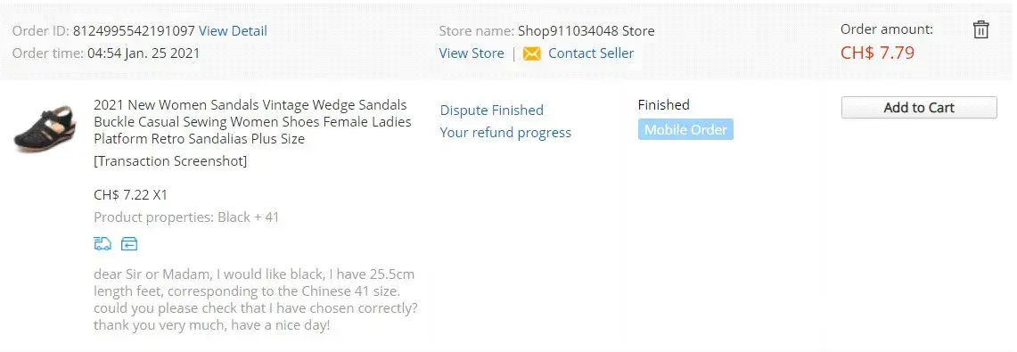 "The dispute (order id: [protected] ) has been closed today and we have made a mediation. You can log in to to check the details.