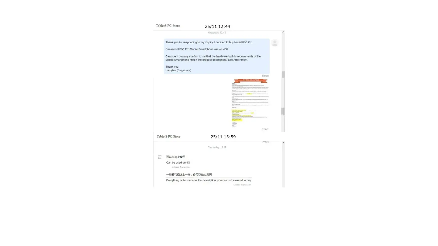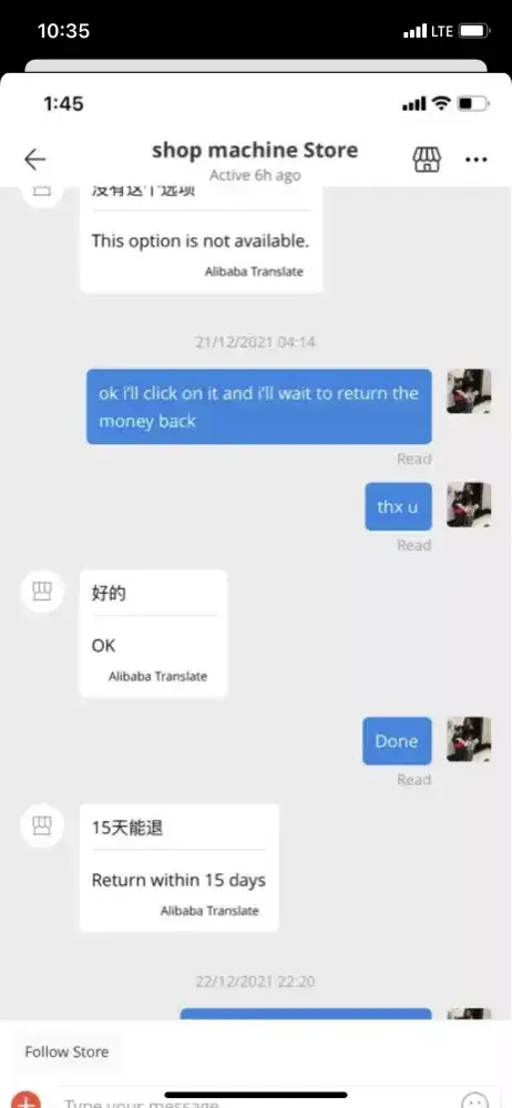 When I checked in my account in Aliexpress, I saw strange conversation between the Seller (store) and client (hacker).