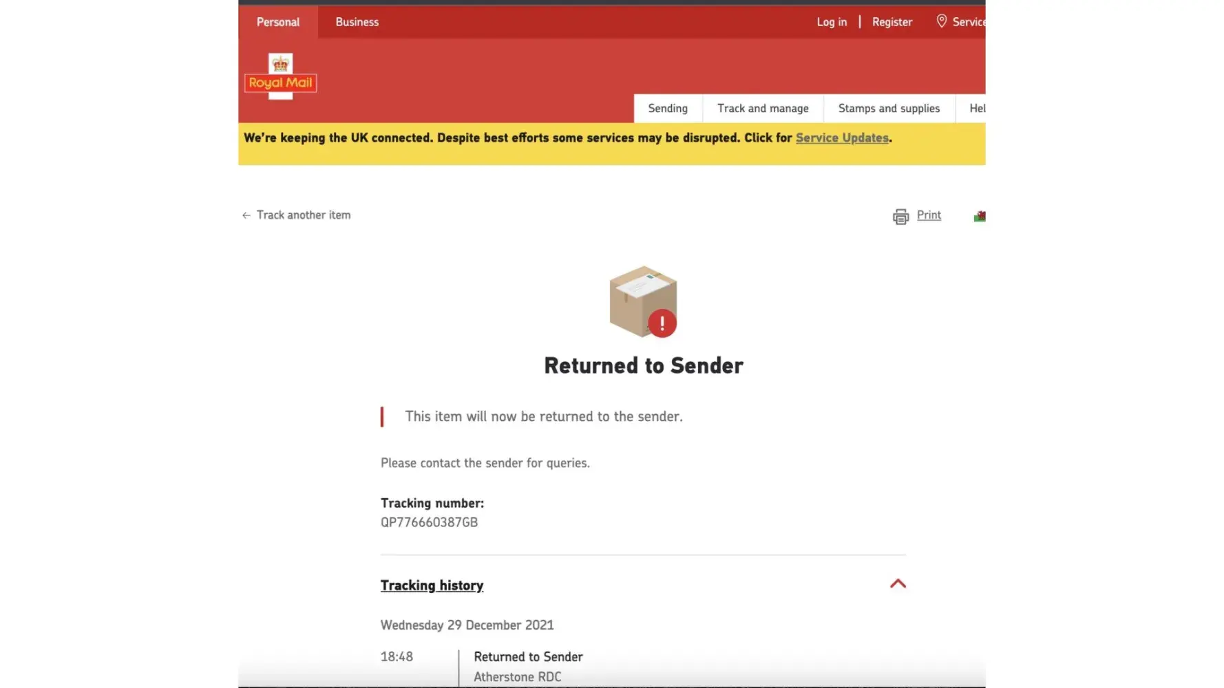 The item was the sent and delivered by Ninja van couriers was received by me personally, as described above the magnetic stirrer failed within 10 seconds after been plugged in.