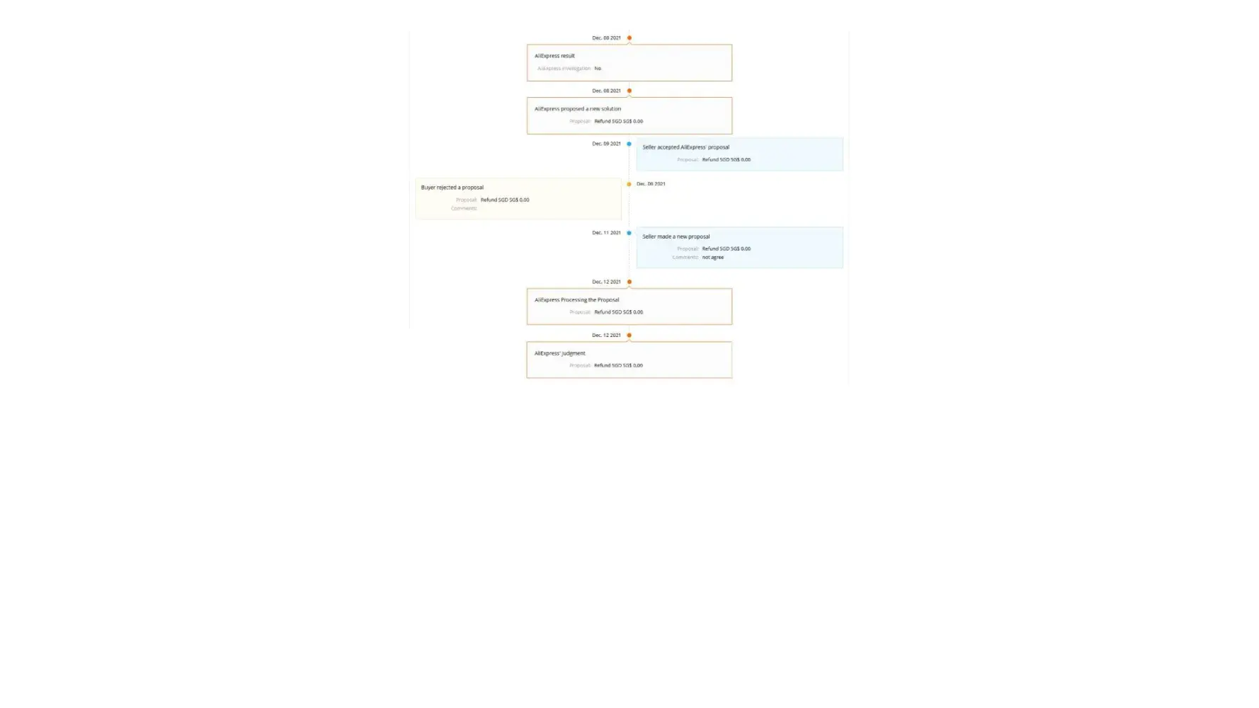 Desired outcome: None, and no reply from Aliexpress