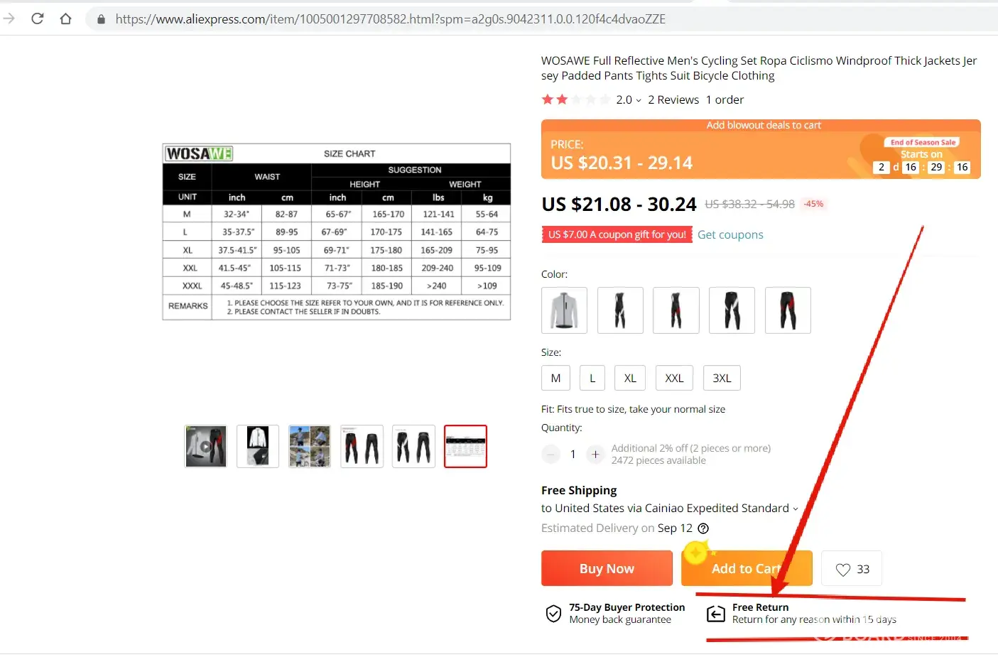 The Westport Store offered easy free return shipping label, And the Aliexpress Dispute says you don't have enough evidence when I have sent pictures, you the customer has many reasons to choose the closet is item not described, you do not have the option to click item to large or big. So now the Westport Store and the Aliexpress Dispute together giving me the Customers the back and forth with trying to return items that do not fit when the advertisement for the item clearly says easy free return shipping for any reason within 15 days of receiving the item.