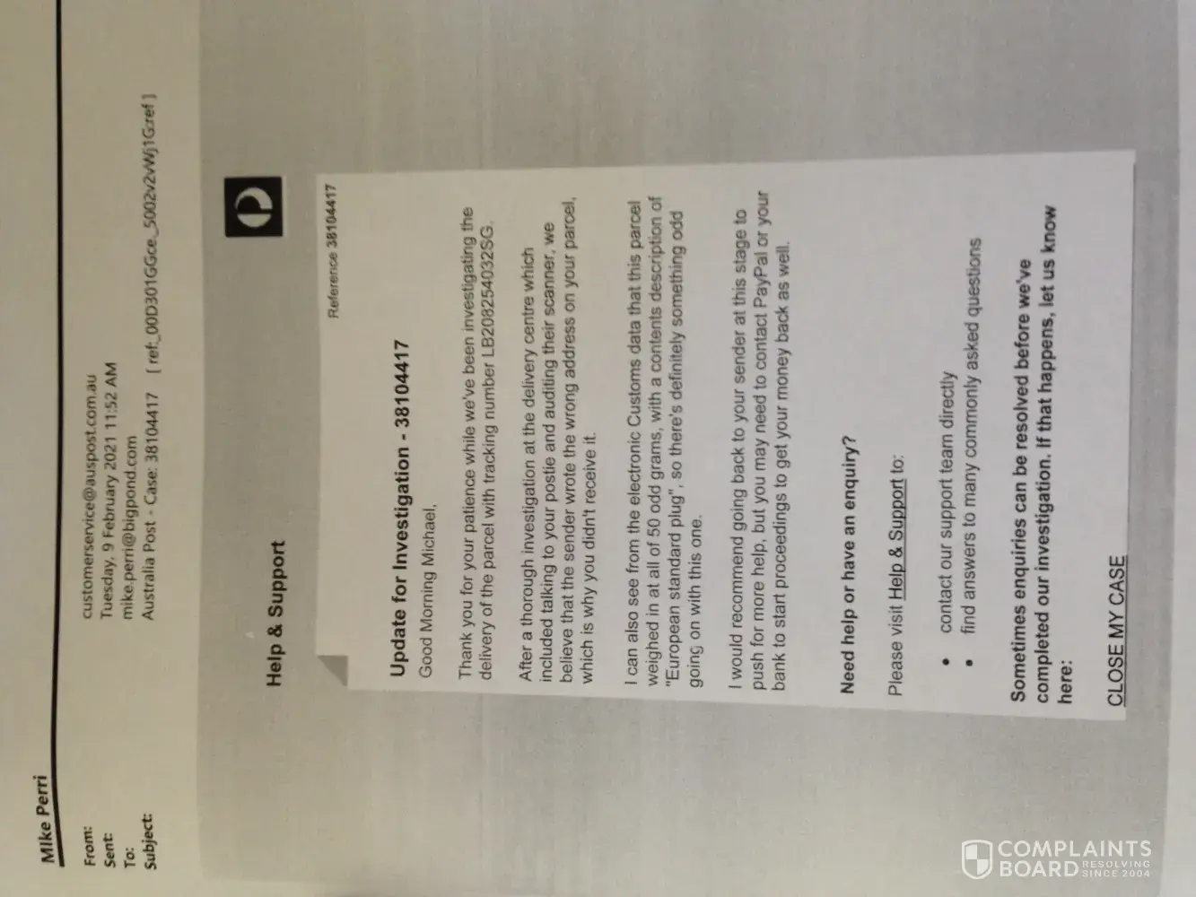 (3) The conclusion reached by Australia Post was that the item I received was erroneously addressed to me.