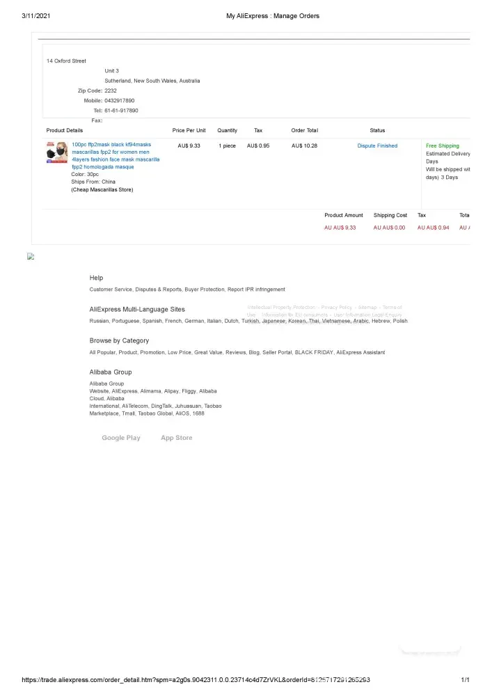 (5) The dispute I raised was abruptly closed by Aliexpress once I confirmed an item was sent to Australia. At this stage I was still under the impression that we were dealing with my correct order. Not until Australia Post looked into the matter was it clear an error was made at on seller's side.