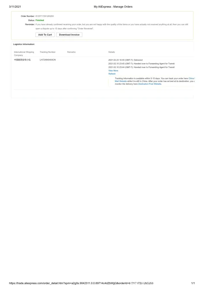 (1) Inquired with about overdue item both Aliexpress and PRACMANU. Both insisted the item was sent correctly.