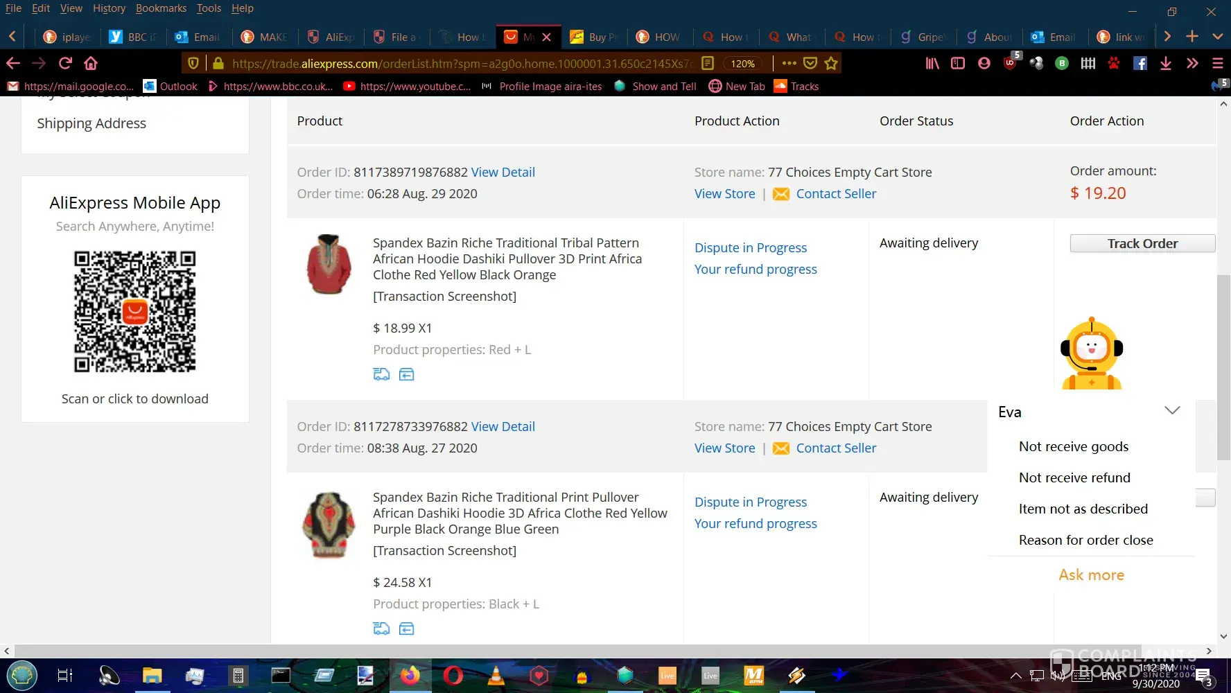 C: the only communications offered by Ali is an apparent 'help-bot' called 'Eva, who is absolutely RUBBISH and offers wrong multiple choices, and actually just seems like a tool to drive customers away froim complaining or getting preoblems fixed.