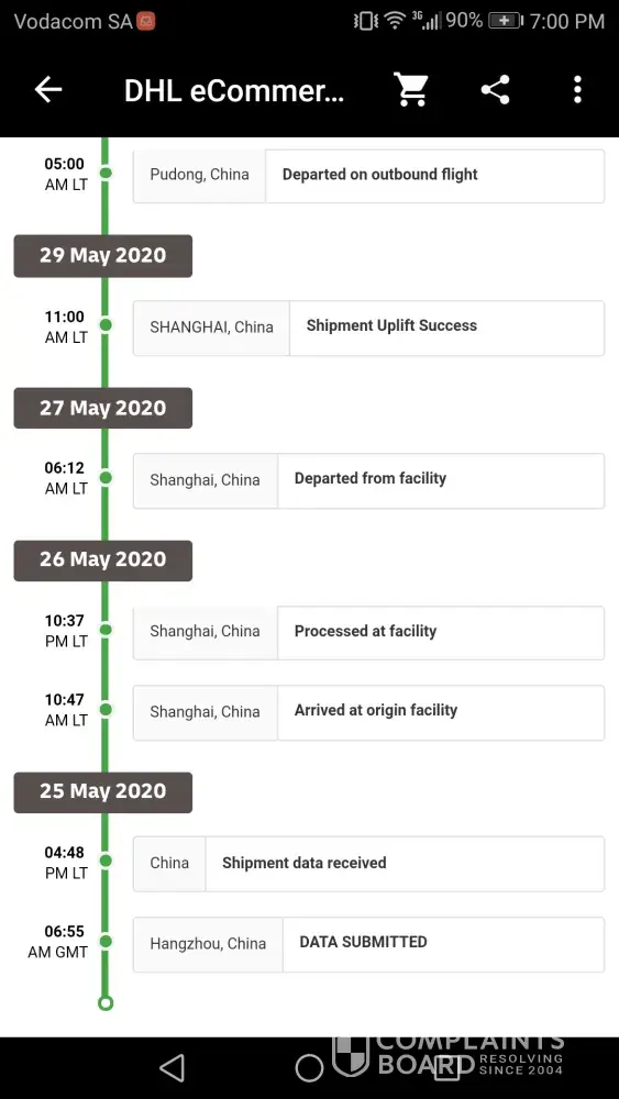 Jul. 14 2020 the tracking info still stook at Jun. 14 2020. Seller didn't response to my messages. Therefore I opened a dispute before buyer protection running out.