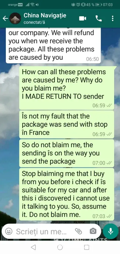 It was not my fault that the package was returned to china.
