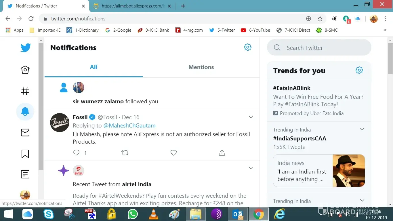 I ordered an item from Ali express on 2 december 2019. The order got closed and was then cancelled. According to Ali express i was refunded on 10th december 2019.