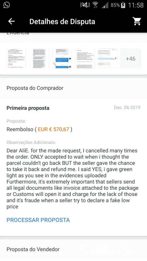 On 2019-09-30 I for the first time bought on the AliExpress website a smartphone worth 567.06 euros. 3 days later I decided to cancel the order before it was shipped. I sent several messages to the seller indicating my intention to cancel it. This seller seemed to ignore what he was told but finally he said he could take the order back and fully refund me. I obviously accepted and i said yes. However this guy sent the smartphone anyway, even after the deal was made. Once here in customs from Portugal I logically requested to send the package back to the seller and so it was. Aliexpress kept my money for about 3 months. I've been involved in a dispute with this seller and Aliexpress all this time and when they finally agreed to return the money that was mine, they still withdrew about 6 euros for me to pay the shipping costs back. It did take 3 months to massacre a customer and in the end they withdraw money from the customer because of an incompetence of the seller. Even after I revealed all the evidence Aliexpress pretended that nothing was shown. It's like im talking with robots that can't see anything but what they want to see. I received 562 euros and i paid more than that. Anyway, i spoke many times with their chat assistance, and everytime i talked about this situation and shown everything i had as evidence they told everytime i would receive my money fully because that was the correct thing to do. In the end that didn't happen. I don't care if it's only 6 euros because it's more on the table here. All that happened in these 3 months was madness. This company and their ways are madness. You can show one picture and they only see an other. Infinite talking, discussion, debates. ..asking for patience and burning time and keeping my money. I can see now that i use this app only to lend them my money and fight for it. I uploaded a few pictures because i have more than 40.