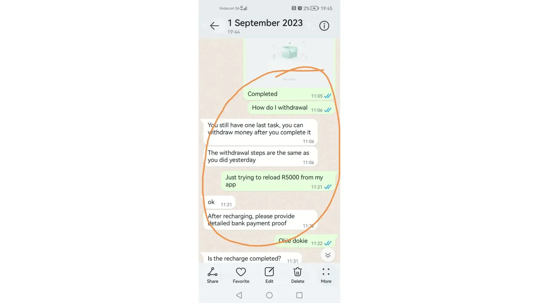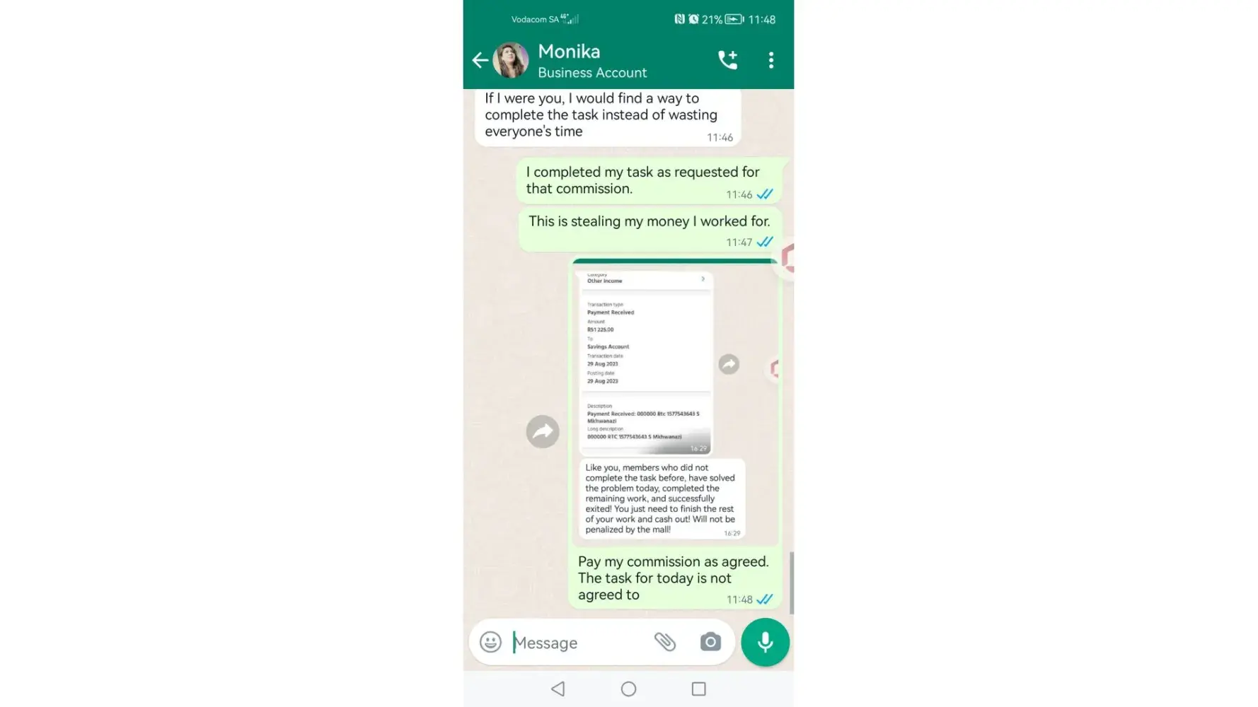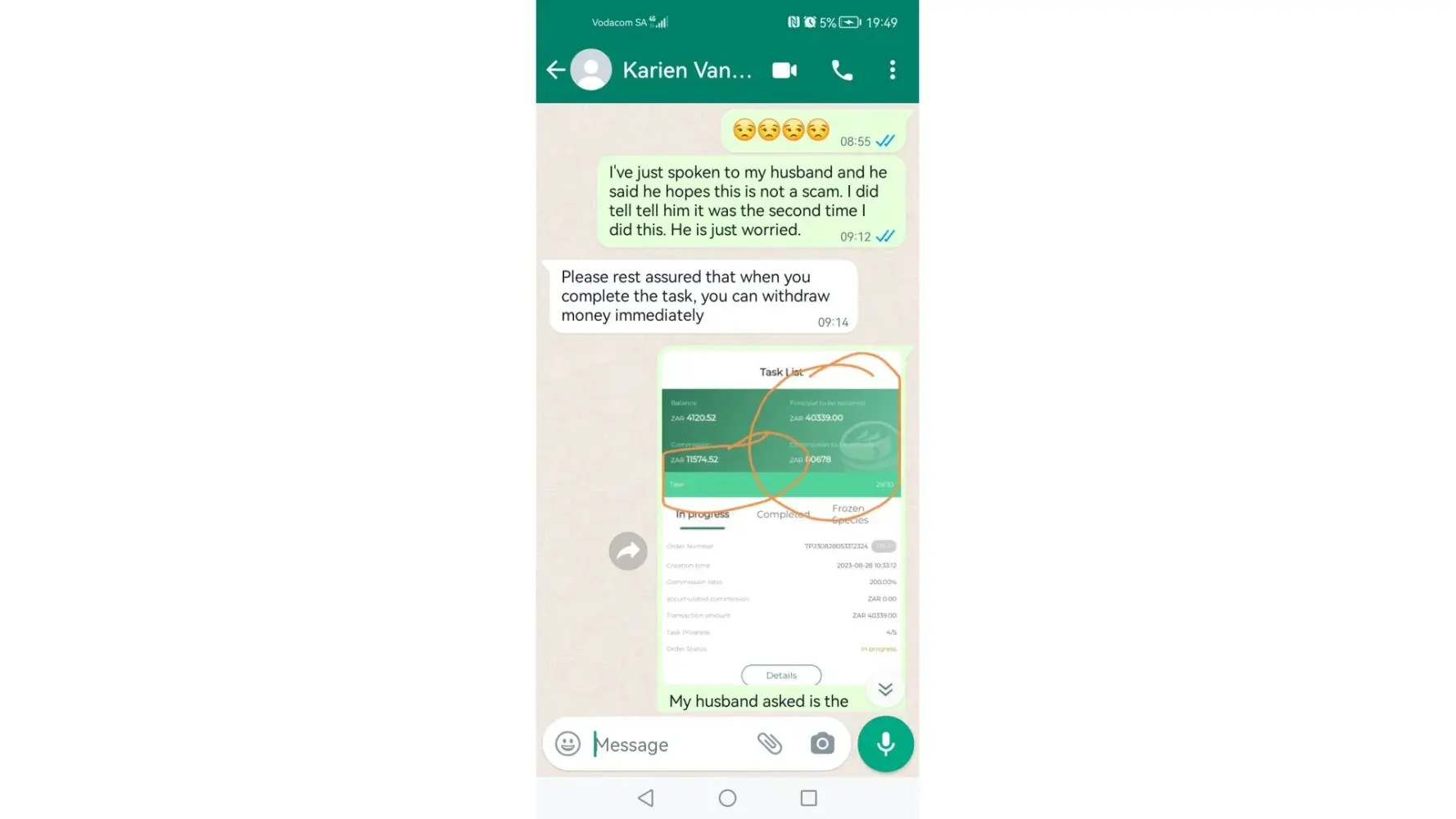 I have done the work on the platform with money I had to loan from family as I was told that I had to do the last order that I was struggling to get money to do. I then tried to withdraw my commission as agreed with the manager I work under and was blocked from withdrawing the commission I had earned to start the next task as agreed with my manager Karien.