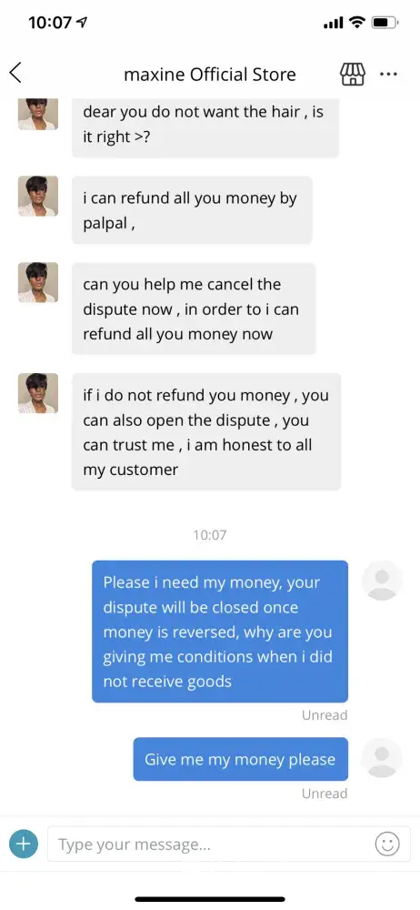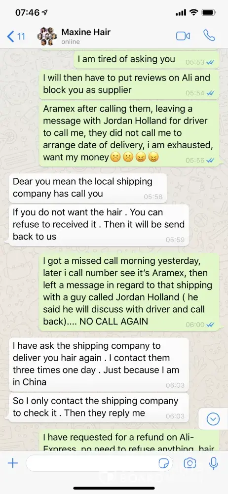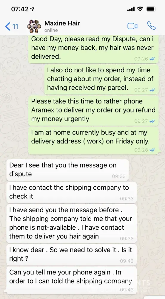 I would like to save you a big loss, never buy from Ali Express from a shop called ‘ Maxine Hair Store', they will not give you your refund if the hair is not shipped. Aliexpress and seller marked my goods as successful delivered, my order ID [protected] when i had not received my goods and they had failed to reach their own shipping company Aramex, later the seller pathetically told me i should go to the website to mark that i had received the hair and put 5* for product and service, when i had raised a dispute and want my money. How unfaithful, how unlawful, how disrespectful to think Chinese stores can consider the African Continent as having stupid buyers to try and treat customers as such. I am still fighting for my money... please be careful they will steal from you too...