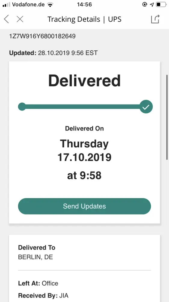 Unfortunately the postoffice told me they had already sent it back to the Fay store. Since then I am in contact with the Fay store who says that they still have not received the product and that I should ask for a refund. But when I ask for a refund I get a message saying that I cannot open a dispute because of timeout.