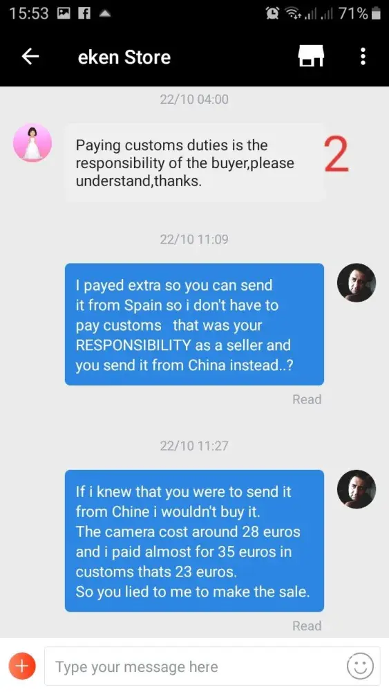 3) advised me to open a dispute, although she knew very well that I could not do this. That is, the seller behaved unprofessionally and ugly.