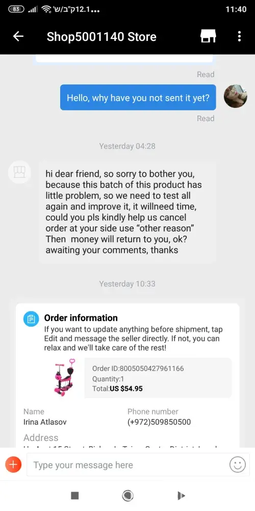 I want to complain to you about my problem, which the owner of the specified store refuses to solve (the owner's name is Ann). Moreover, the owner is not even interested in somehow hearing me, although he is fully responsible for the inconvenience caused to me.