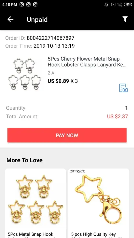 AliExpress status still stated "awaiting payment" after money deducted