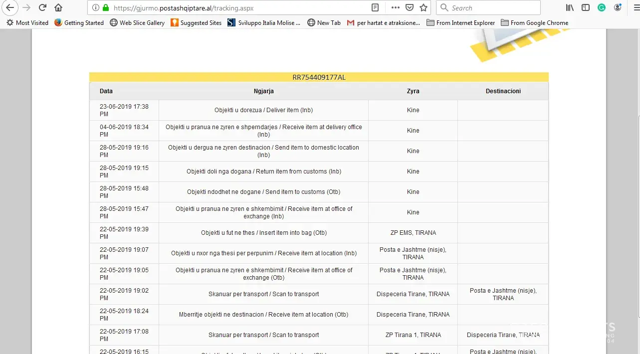 Attached are pics of our conversation and status confirmation of the delivered item from the Albanian post office.