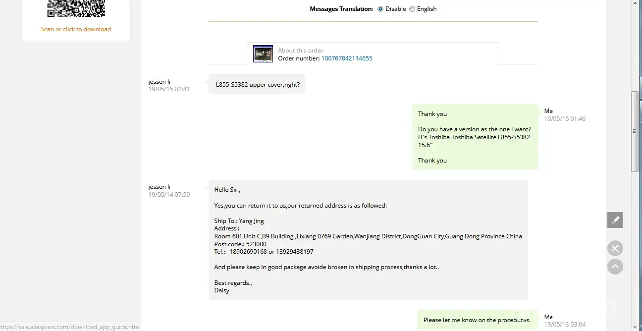 In the meanwhile, the dispute period was over and I didn't realize it since I wasn't very familiar with Aliexpress procedures.