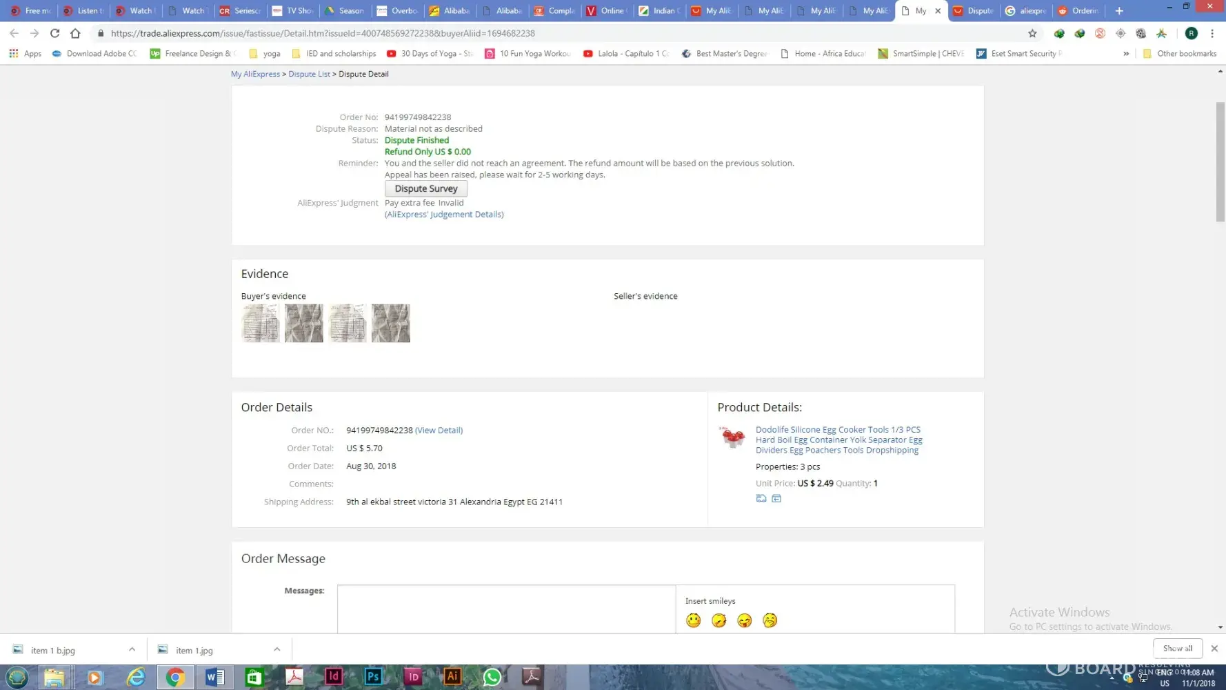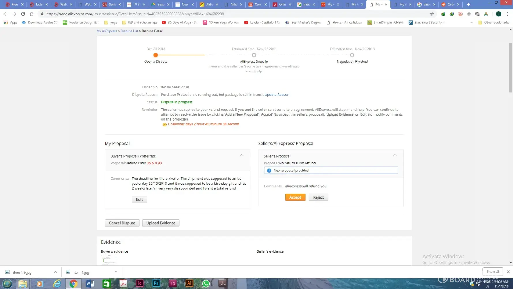 On Oct 7, I contacted Aliexpress customer service and provided the evidence from post office. Aliexpress customer service created another appeal and promised to solve it asap. However, nothing happened after that!