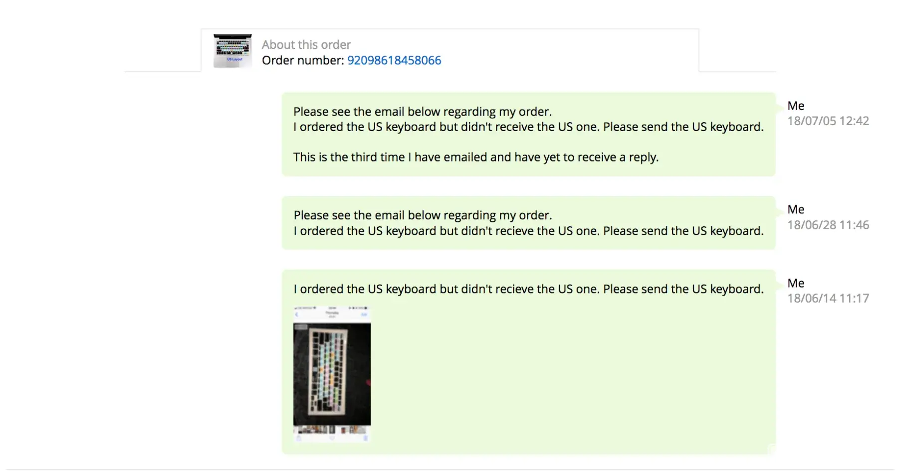 I ordered the US keyboard but didn't recieve the US one. Please send the US keyboard.