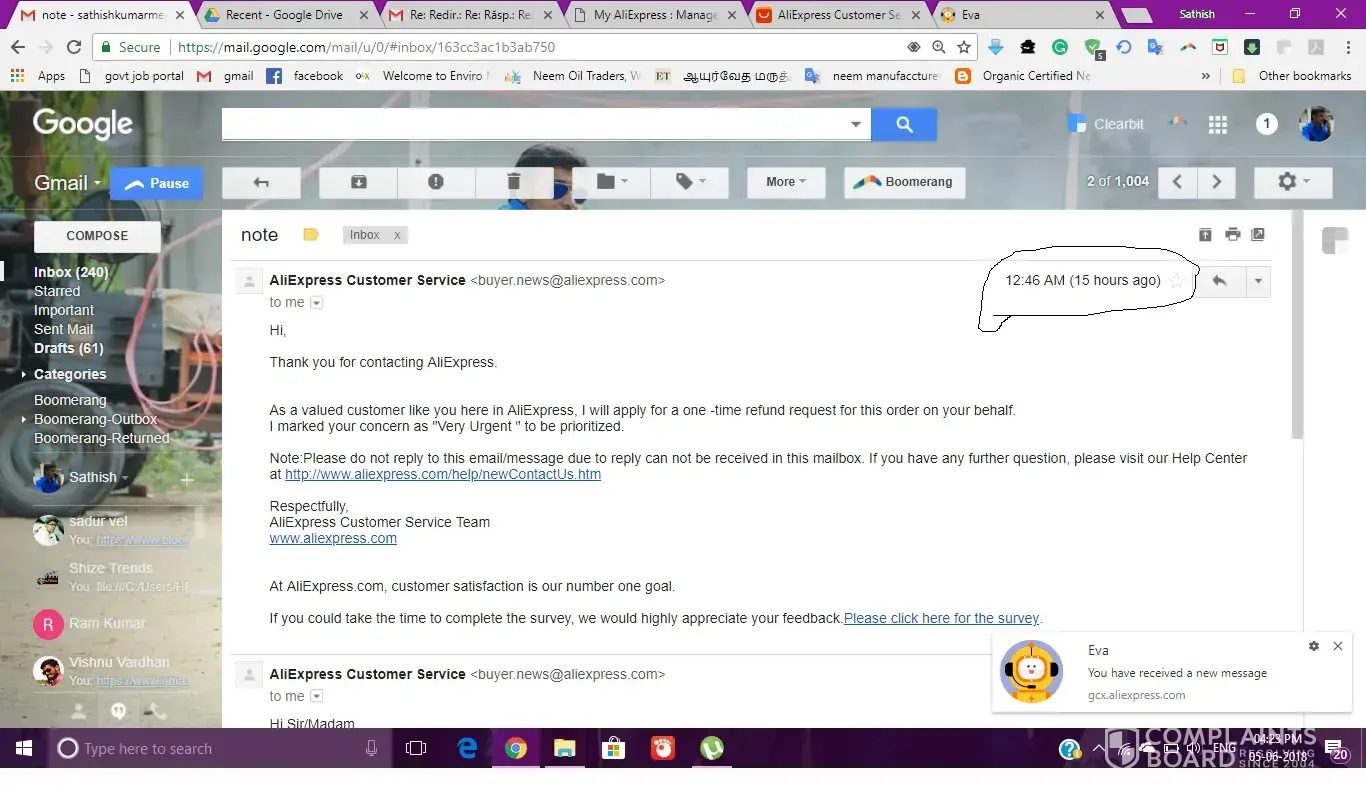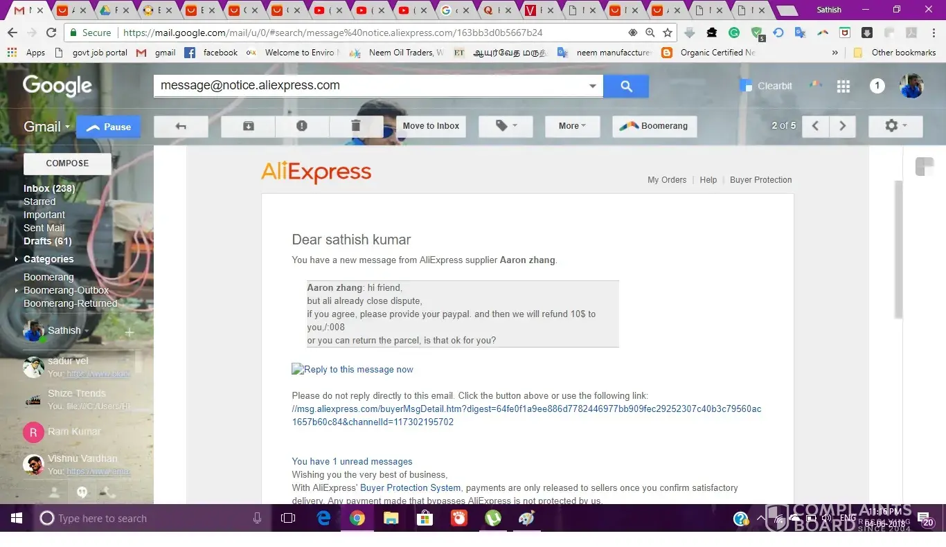 I order smartband from aliepxress on may 15 2018 I received product on 27 may 2018, I received manufacturing defective product, I apply for a refund process with the picture they reject my application, so once again appeal for it they rejected again and said no evidance for prove my side, so I taken video and chat with the representatives and send the videos the representatives they told me they have note it down on their system. But after that also I won't get any result.in the meantime I contact seller he also not give proper response to me. I chat with more than 10 representatives of aliepxpress but I won't get money back. One representative apply for a refund on 5th june and say wait for 10 working days, I did that and ask today 19 the june the other representative told me the refund process is taken on 13 the june only so you need to wait for 10 working days upto 27th june. Please take the action aginst aliexpress to solve this issue as soon as possible. Here I give the link for video evidence what I submit to aliecpress represntative.