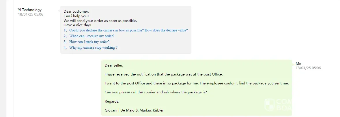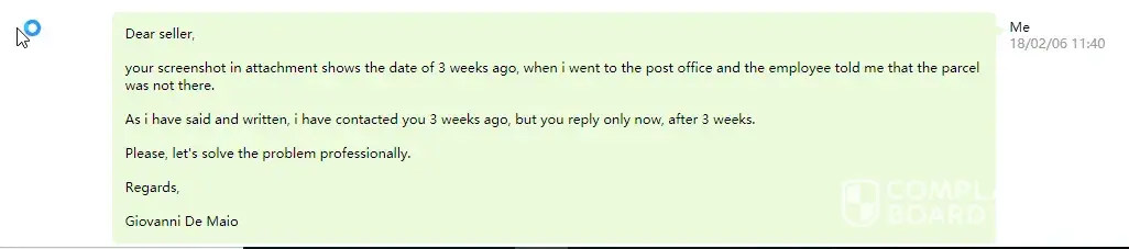 On the courier website the information is still wrong after 3 weeks, because it states that the package is still at the post office, something that it is not true, because i went to the post office twice and the package was not there.