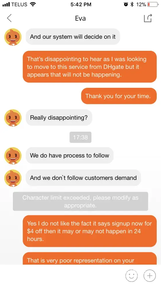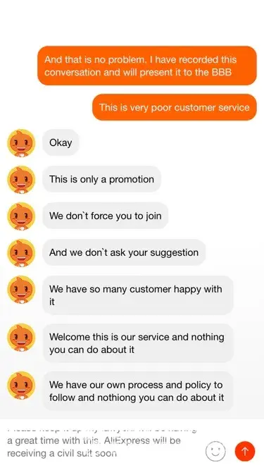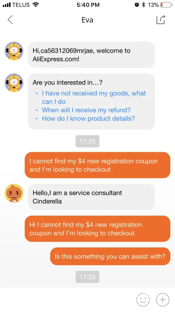 So to start I wanted to switch from using DHGate to using Aliexpress. I got the iOS app and went on it. A pop up came up and said signup now to receive a $4 off coupon. I click on the signup link and proceed to signup. I assumed I received the coupon. So I look for 5 min or so and find an item I like then try to checkout. As I'm in my cart trying to pay I'm looking for the $4 off coupon and I cannot find it. I get to the live chat and receive and agent. She tells me it's a first come first serve basis. Well that's false advertising saying signup now and get a $4 coupon only to be told 5 min later that you were to late for the "promotion". The agent then became very rude after I said it was disappointing as I was looking to switch from DHGate and that it was a poor representation of the company. I saved the chat logs for that purpose. I then got another agent on the line who apologized for the previous agents behaviour and would have someone look into it although I'm very doubtful that will happen as the second agent was using the same phrases like "dear" and "I see" as replies just like the first agent. Have a feeling it was same person both times. Basically I will not be using this company as their customer service is beyond horrendous when she says things such as "Welcome this is our service and there's nothing you can do about it" and "We have our own process and policy to follow and there's nothoing you can do about it". Well there is something that I can do and it is not spend my thousands of dollars I was going to spend purchasing all new camping gear and who knows what else and raising awareness so others do not take their business to such a rude company also.