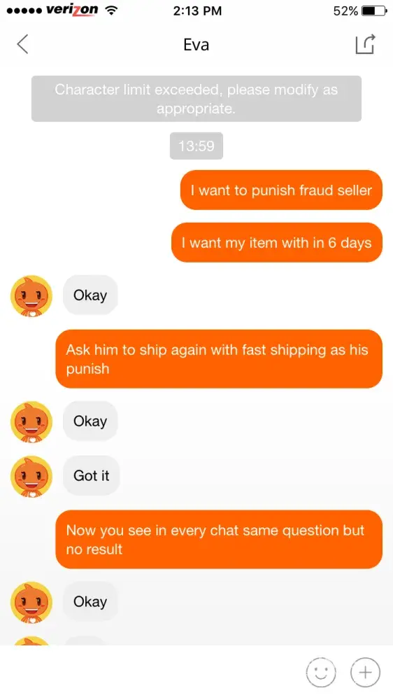 You may check yeh history of complaint of this item where hours and if times has spoken to your complaint receiving girl in the app.