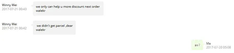 This is the most disappointing online store ever. I'm so tired of them. My mother's birthday is today and I ordered a present for her 2 months ago. The website says it hasn't shipped yet. When I contacted the seller and described my problem, the only thing he asked was whether he could help me or not. And it repeated several times. After every message I sent I saw the same message from the seller. Is this a joke or what? I'm so angry. I will never buy anything from this hell.