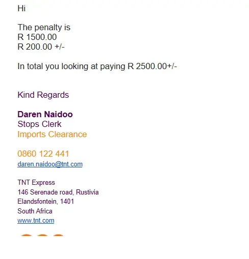 Customs said i must pay r2500 penalty for false declaration before they can release the parcel.