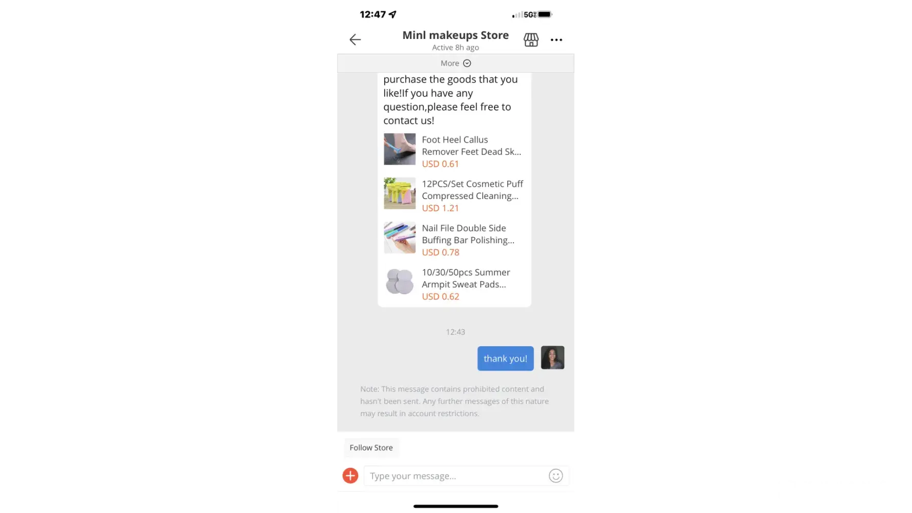Are there any updates? Does anyone have any answers? I have messaged over 70 suppliers at the same time telling them I was a dropshipper and asking them if they had any new products that aren’t too saturated. They have all responded to me, but as soon as I tried replying back, I literally got the same response from AliExpress, and when I’ve tried contacting them today, this was AliExpress response after I tried to send a ‘Thank you!†message: “this message contains prohibited content and hasn’t been sent. Any further messages of this nature may result in account restrictionsâ€. I literally tried to send ‘thank you!â€. How is a ‘thank you’ response deemed ‘prohibited content’?! This is very frustrating. I will have to create a new account and contact them all over again, because they were all very friendly and excited to want to partner with me, yet I literally cannot do anything, and now they probably think I was not serious about BUSINESS. I tried contacting AliExpress support, but their system is literally giving me the runaround! The only response I’ve gotten from the support team was, “ the message contained prohibited content. Please be aware that you are required to abide by AliExpress rules and policies. What rules did I break?!?!? I literally tried to send them all a ‘thank you’ response!
