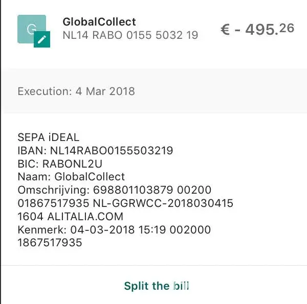 On the 4th of March, I had made a booking from Alitalia . I had paid the amount using my ABN Amro card through IDEAL. The money was deducted from my account, but I didnt get any confirmation message from the airlines. However, after few hours, I got my booking code, but on inquiring with them, I was told that the booking didnt happen and they didnt receive the money.