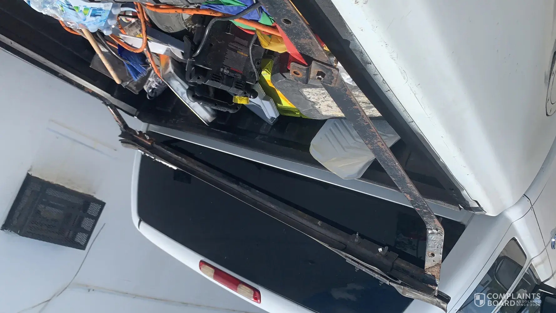 Truck was towed from my residence on Wednesday morning at 8:30. Went to get the truck at about 11am and the entire back was ripped off obviously by the truck driver or someone that works for the company. Company told us that the pictures taken before the truck was towed proved that the back was on but they are waiting for the tow truck to see the cameras on...
