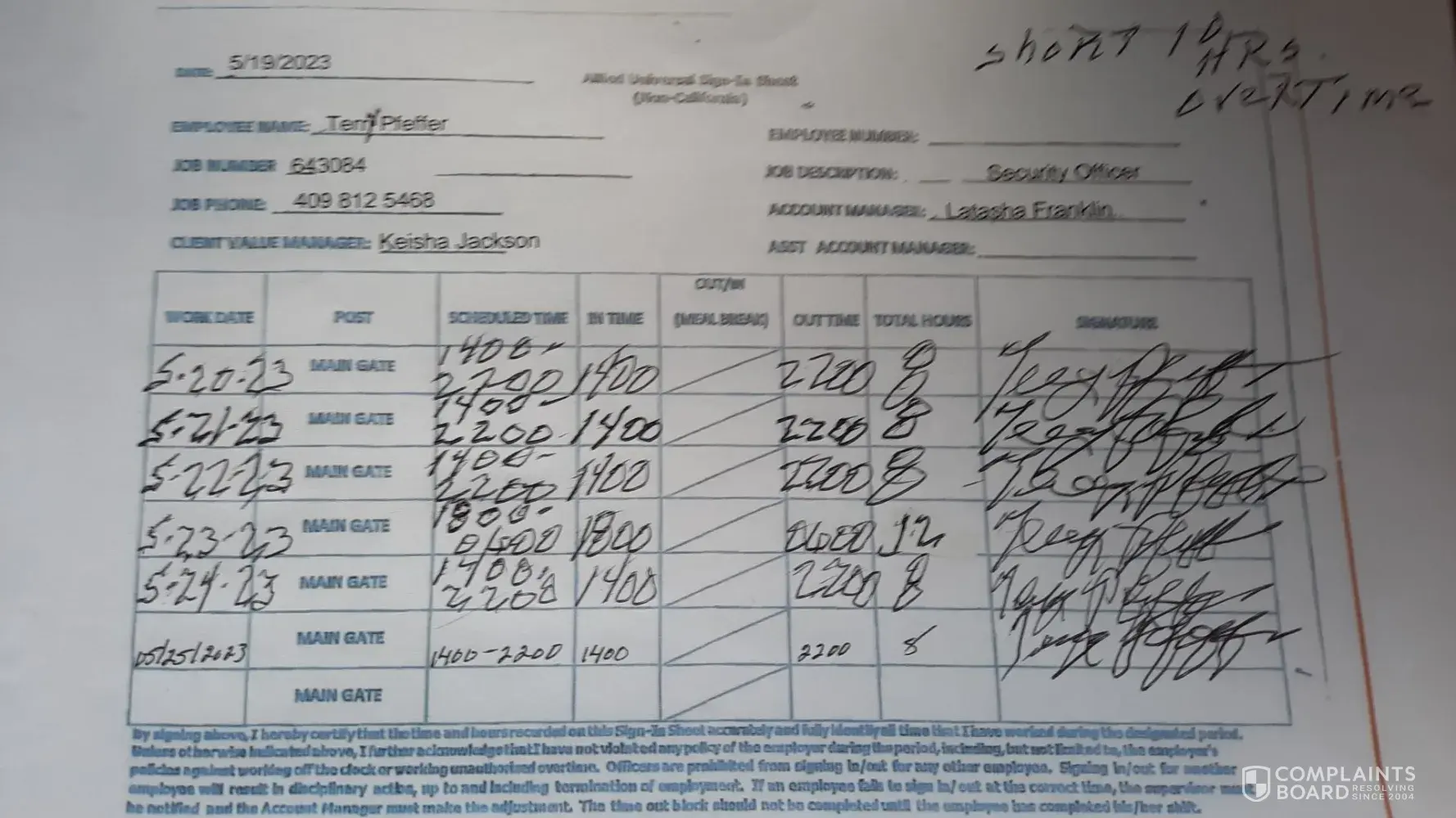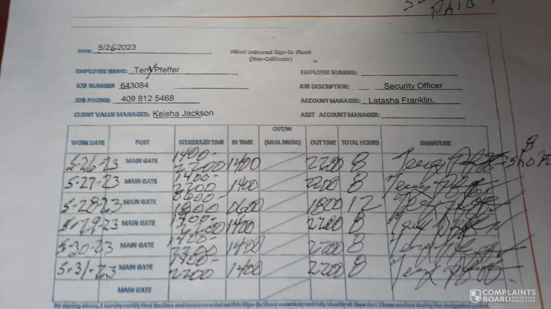 Read full complaintConcerning Experience with Allied Universal Security Services