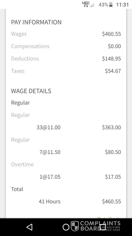 This is the second time in 1 year that my pay has been wrong. Not missing 1 or 2 hours, but 36-40 hours each time. I'm tired of it. It causes late fees and headaches. Not to mention that I get taxed twice when this happens. Notice that there's never a discrepancy with management's pay. Then have the audacity to tell you that you have to wait until the...
