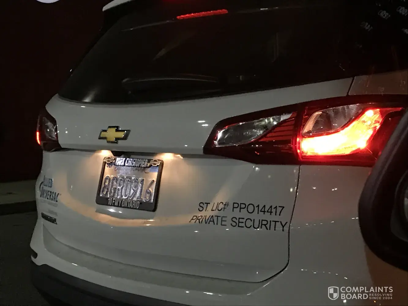 A driver in a Chevy suv with Allied Universal marking tailgated me on a two lane road in a downtown area for no reason and glared at me when she passed me after a right turn onto a four lane. License plate CA 8GRD916. I don't know if she was in a hurry to go somewhere or what, but I do not expect this behavior from a driver in a company vehicle, especially a security service company.