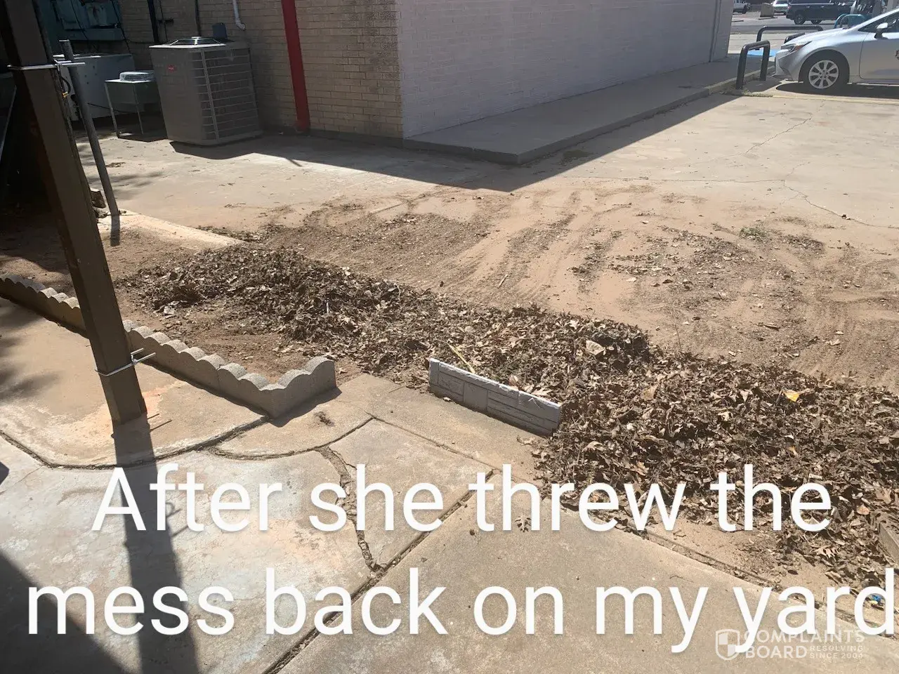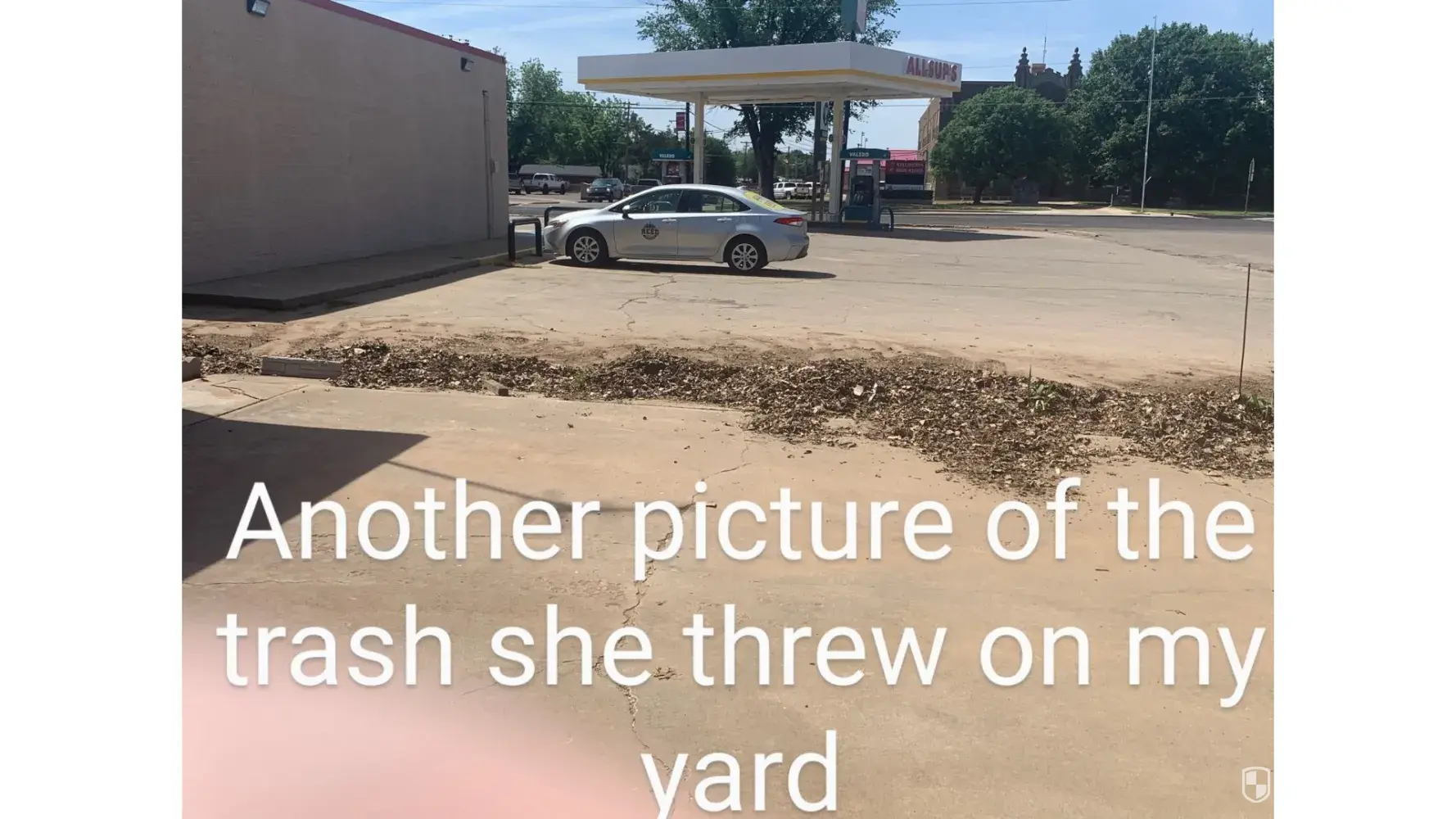 So on Wednesday May 10th I received a call from the manager Joanne Johnson at store in Wellington, Texas on 15th Street and she was telling me that I better clean up the mess in the parking lot. I told her that the mess in the parking lot was already in the parking lot, which is leaves, dirt and other scattered trash collected in that area over the winter...