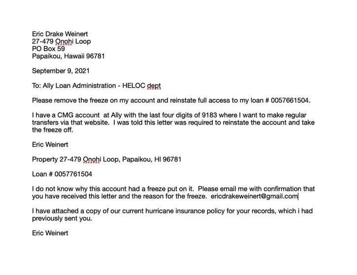 My name is Eric Weinert. I have a HELOC that was transferred from my original initiating company to the ally system. There is approximately $450, 000 available on my loan #[protected].